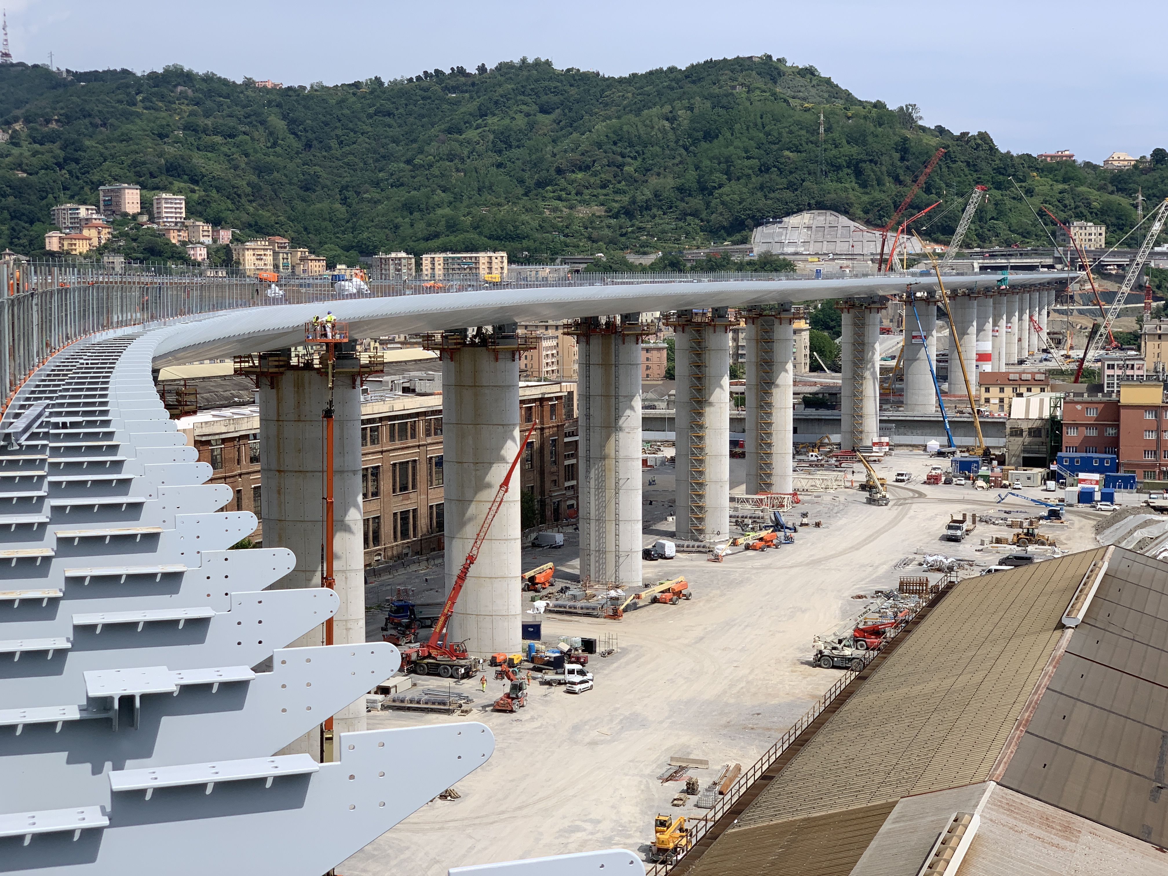 Posa strutture perimetrali per il ponte Morandi a Genova