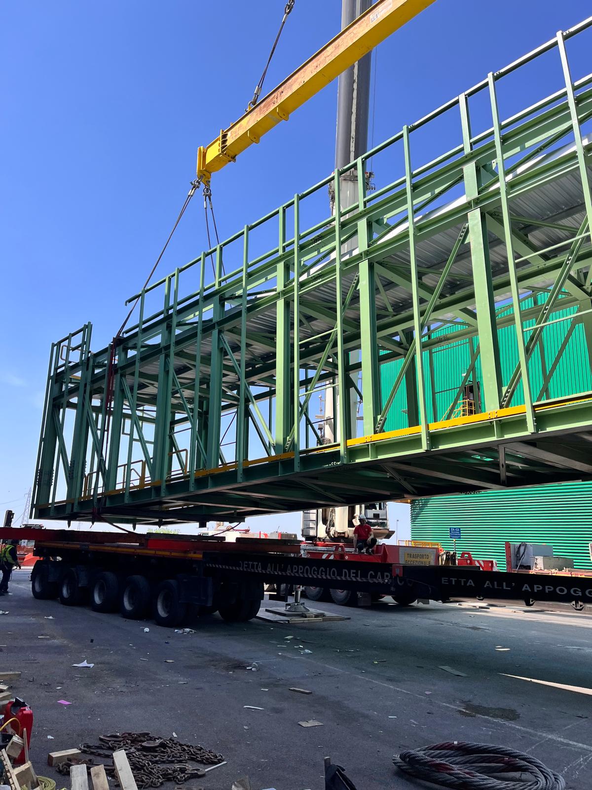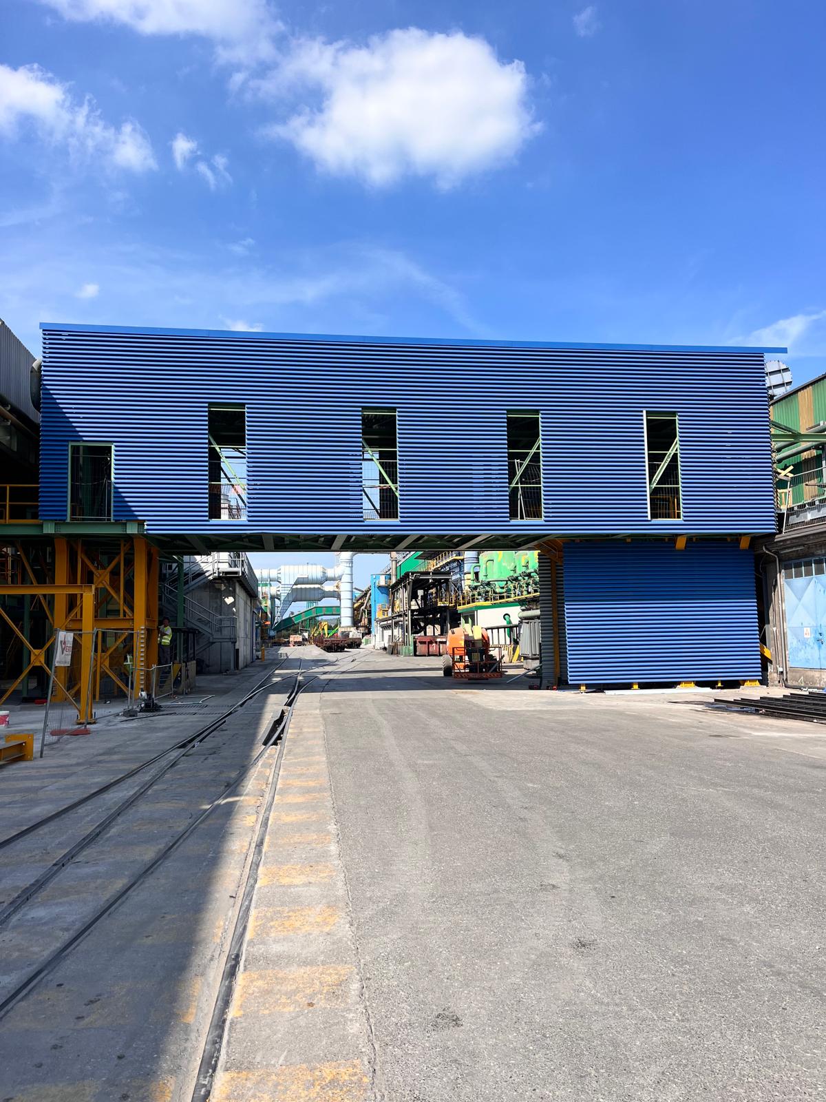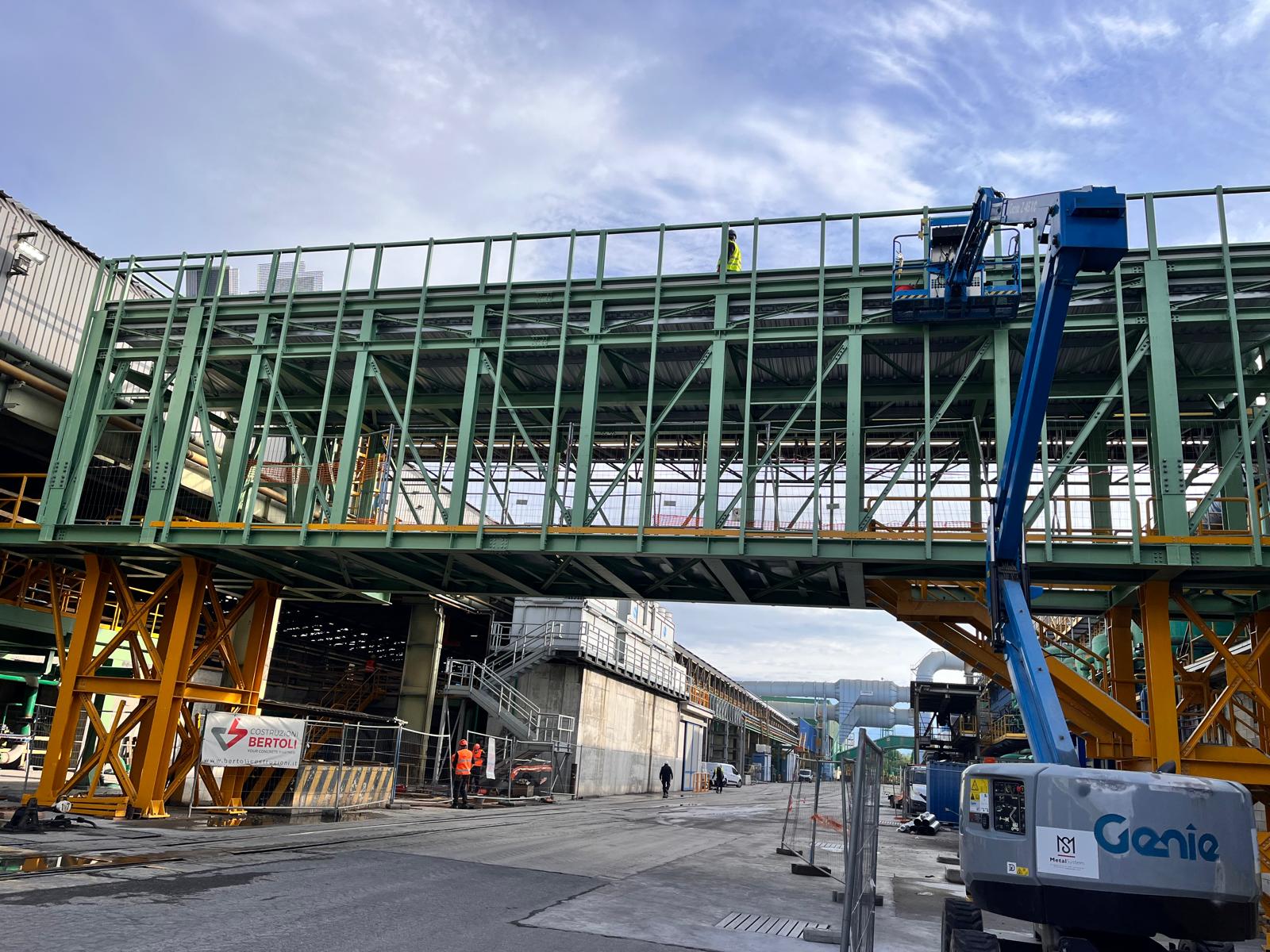 Passarella in carpenteria metallica con rivestimento in lamiera grecata completo di finiture in lattoneria