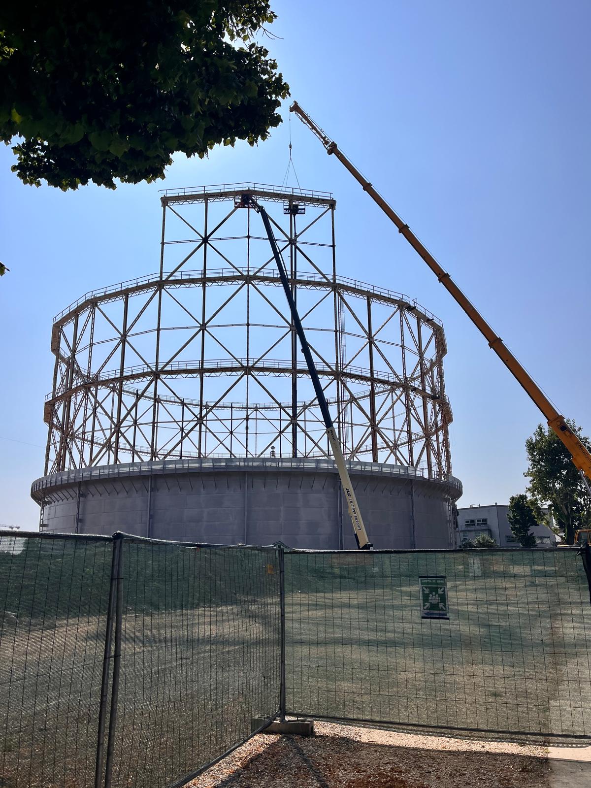 Smontaggio della vecchia struttura metallica del Ex Gasometro Bovisa (MI)